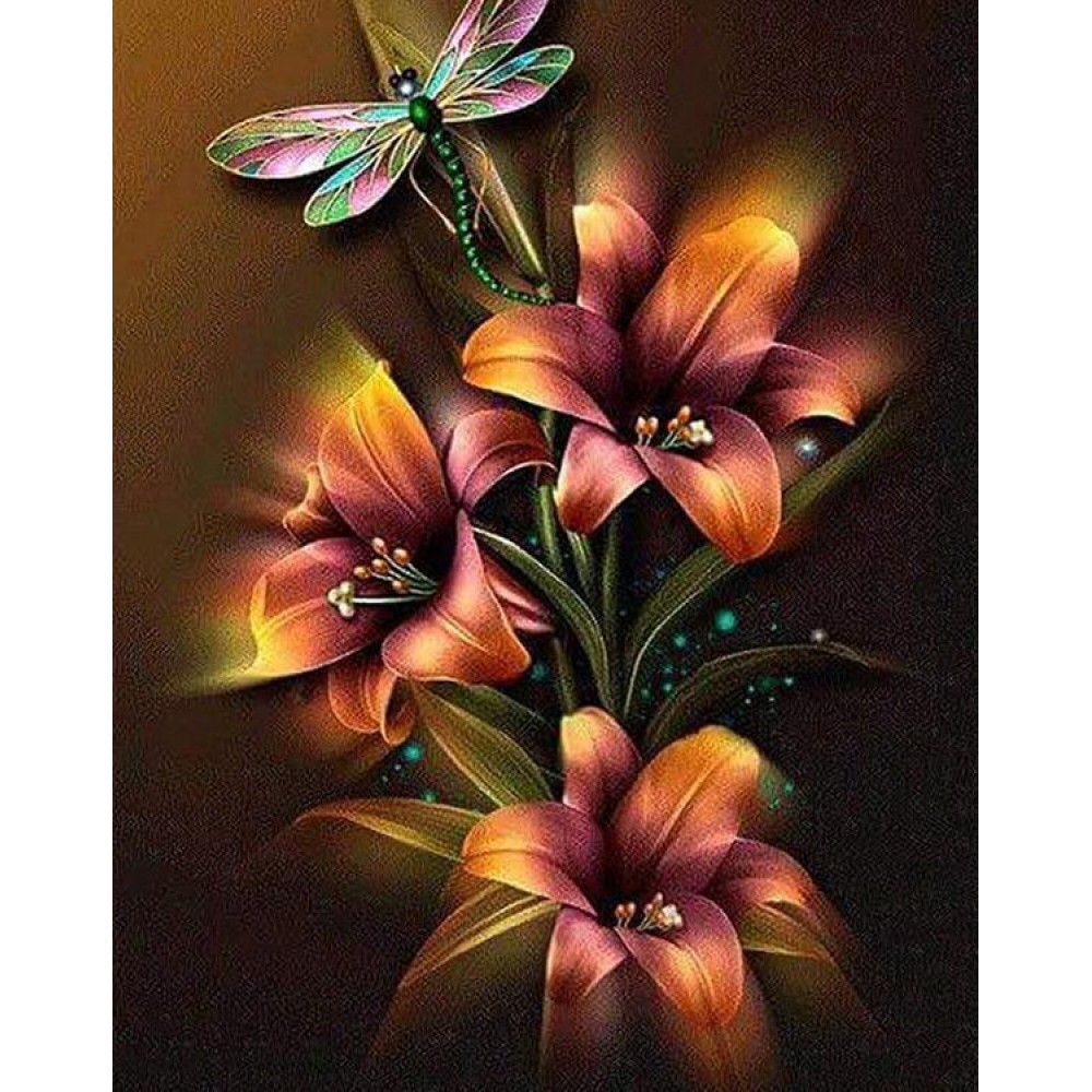 Flowers & Dragonfly 5D DIY Paint By Diamond Kit